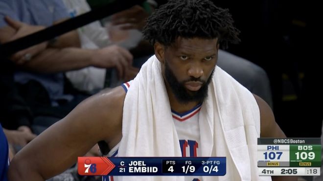 大帝變廢帝!恩比德9中1狂砍4分,新秀34分,就這還拿4年2.48億?